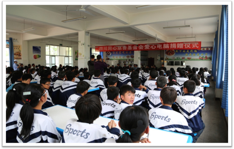 此次受赠对象是甘肃省靖远县双龙中学。捐赠当天,四川同心慈善基金会给学校带来了30台电脑,同时将电教室命名为“同心电教室”。