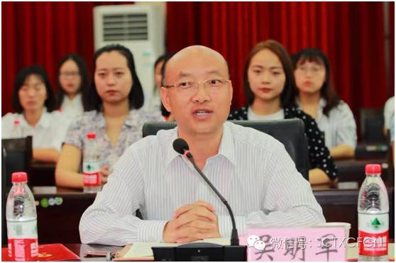 四川建院副院长吴明军讲话,“感谢四川同心慈善基金会及八家单位为四川建院的学生捐赠120万元,我们将会把捐资用到实处。”