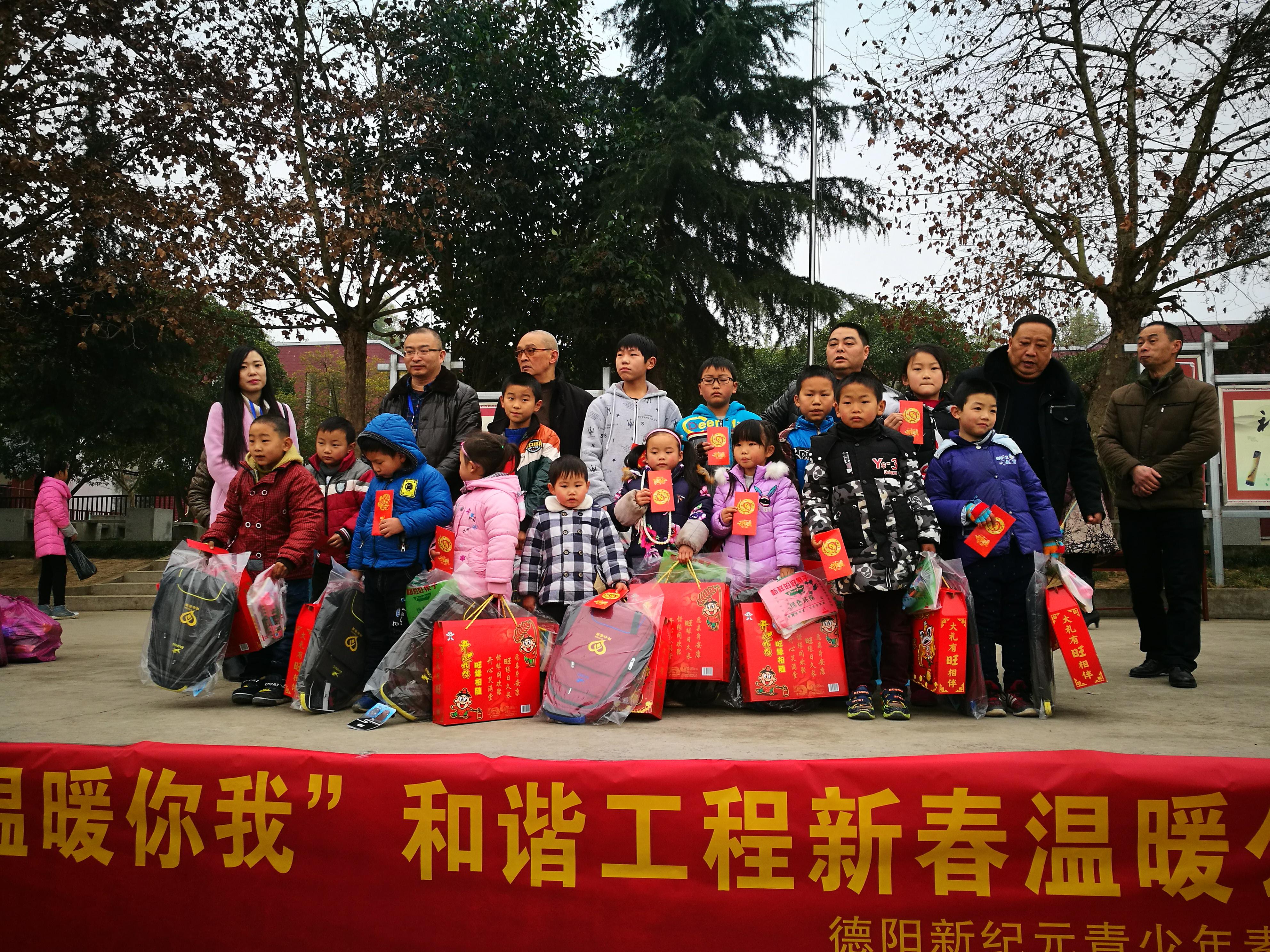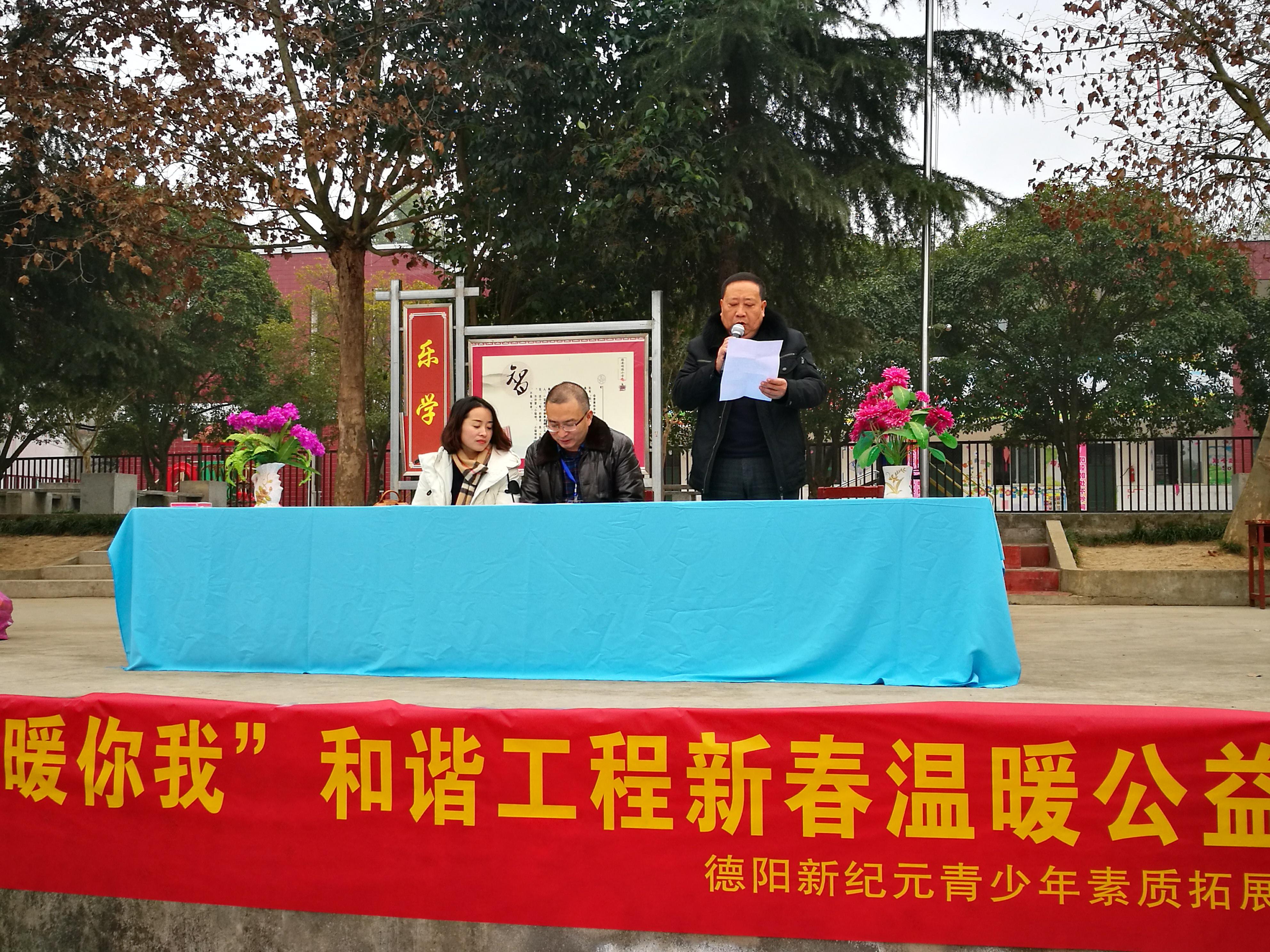 2017年1月14日上午10点,寒风中夹杂着丝丝细雨,我们冒着严寒将爱心带到了四川省罗江县德安明德小学。同心慈善基金会理事长罗钢、工作人员管静韵及新纪元拓展中心负责人杨薇等10余名志愿者参与了活动。此次活动是针对明德小学的50名留守儿童的帮扶捐赠。