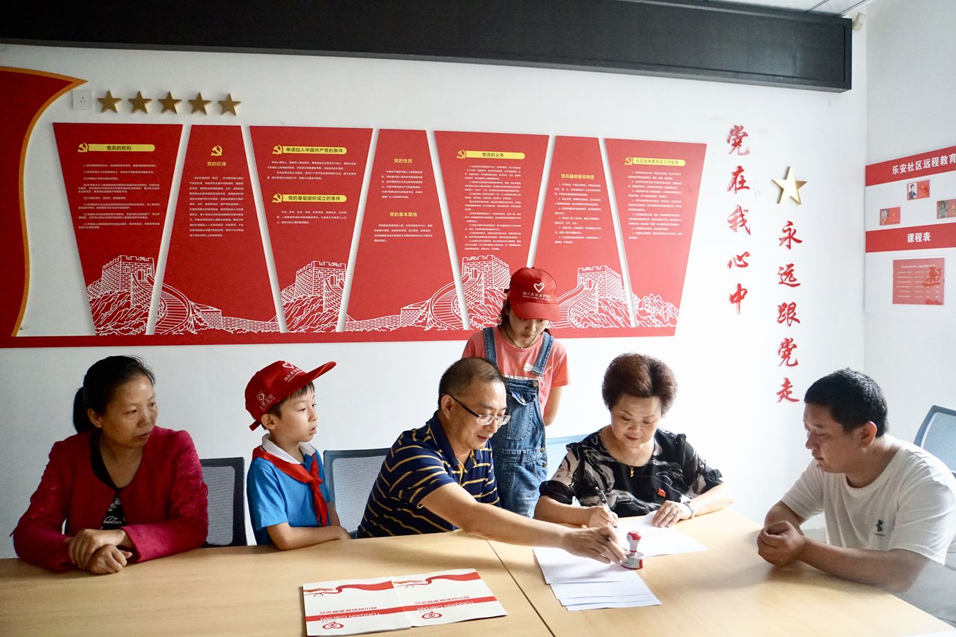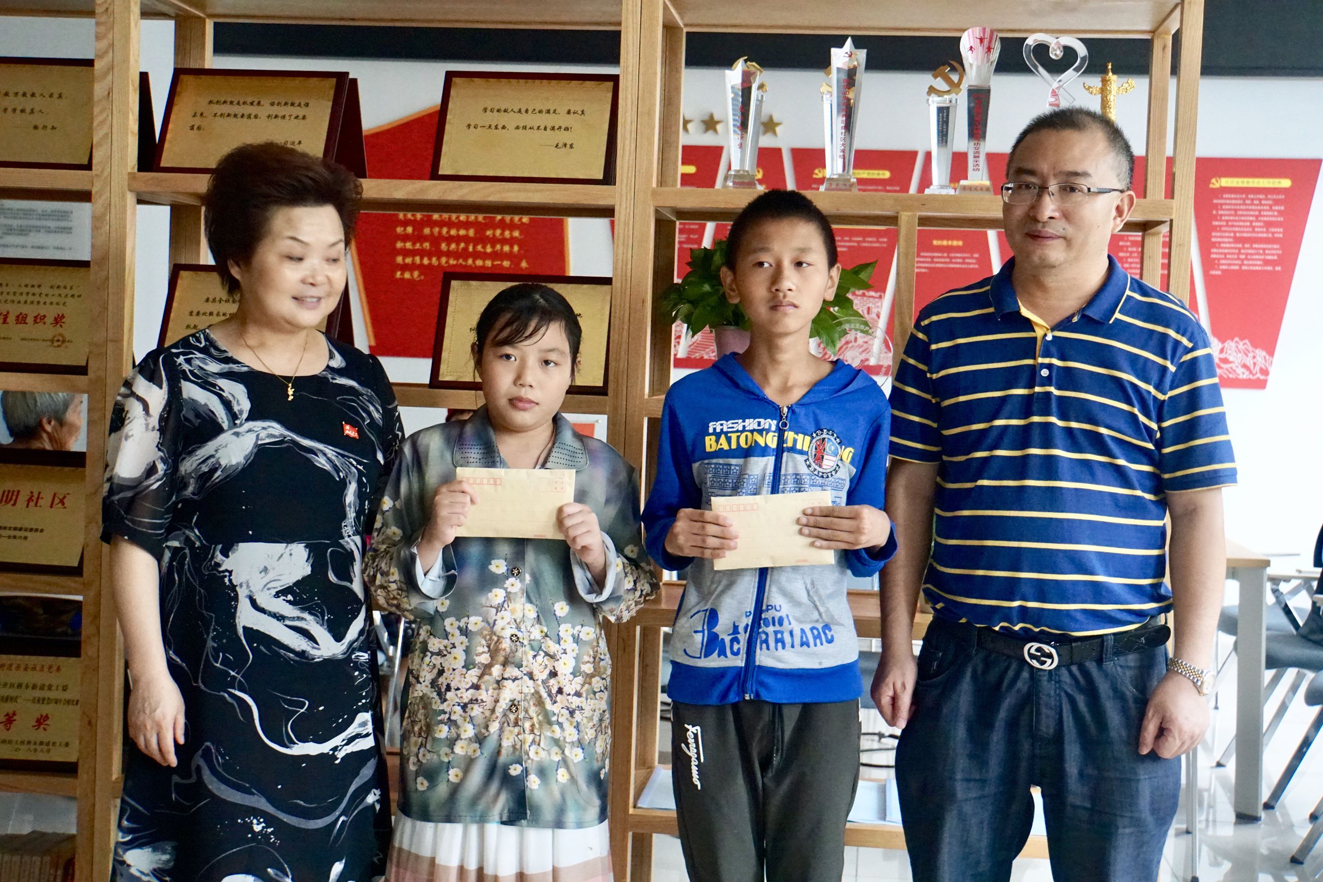 2018年7月11日下午,冒着德阳市首次红色预警的特大暴雨,四川同心慈善基金会理事长罗钢先生、定向捐赠单位四川兴天华建设项目管理有限公司董事长舒泽芬女士、副总经理蒋及斌先生及同心慈善的志愿者们来到了德阳市经开区旌东街办乐安社区,开展了乐安社区贫困学生结对帮扶捐赠活动。参加活动的还有乐安社区党委书记江炳蓉女士、党委副书记倪文春女士和结对帮扶的学生及家长们。