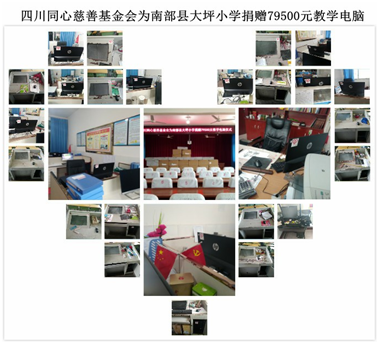 在革命老区南充,同心慈善基金会携手成都兢诚公司和中道明华公司捐赠南部县大坪镇小学近8万元的教学电脑25台。